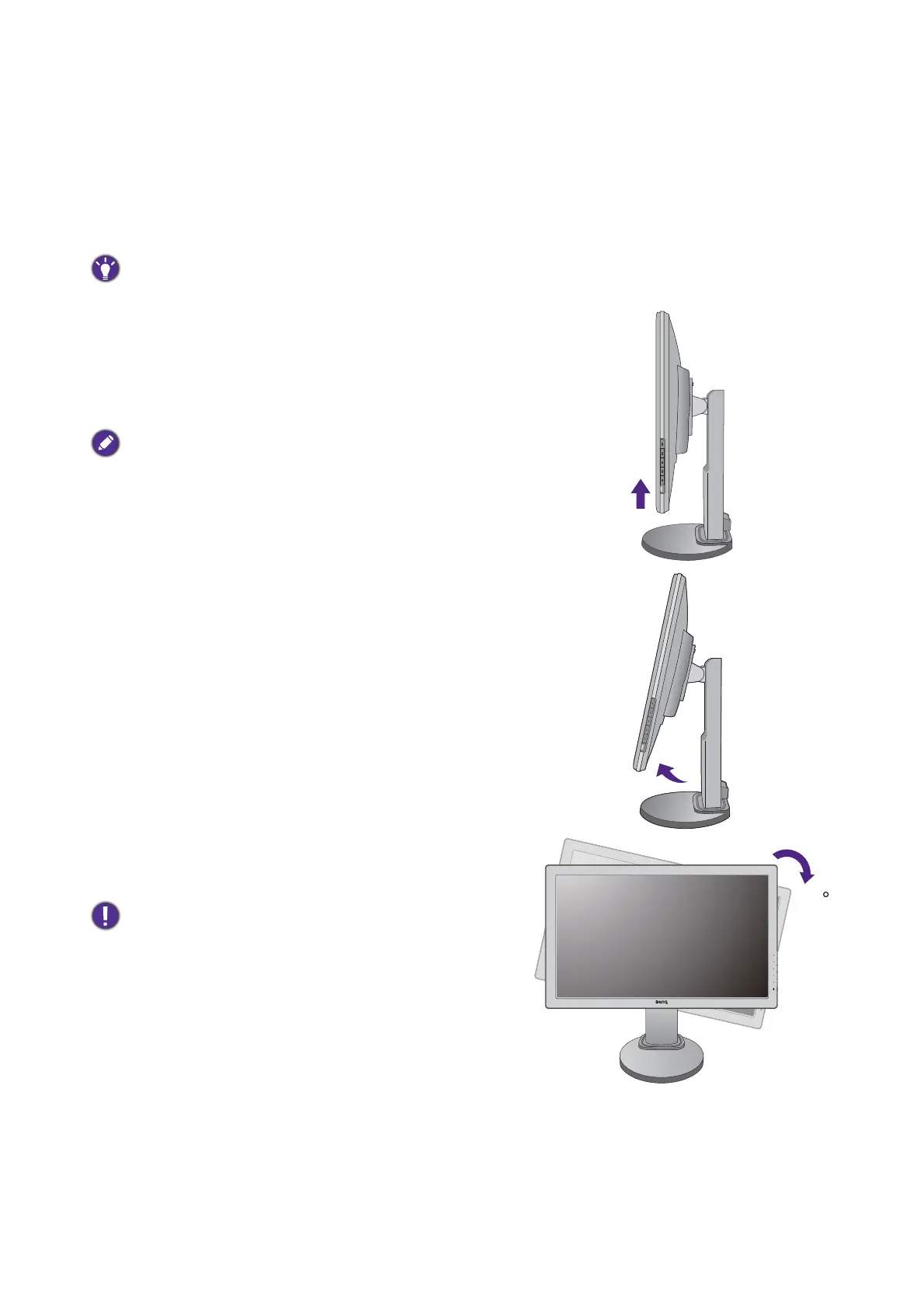 monitor to the highest position before you start to rotate the