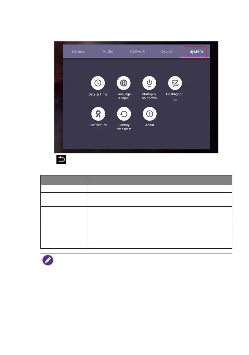 On the home screen, select Setting > System to enter system settings.