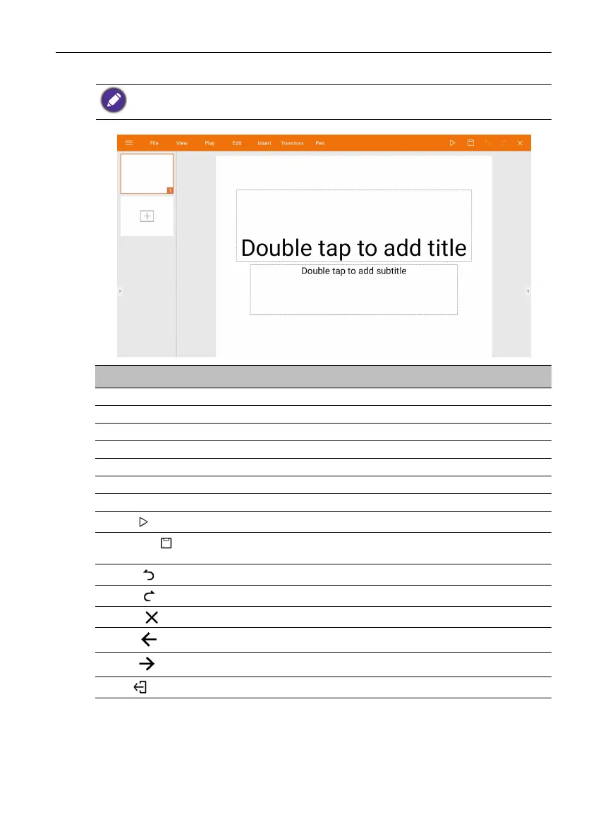 File Tap to open, save, share, print, and manage your presentations.