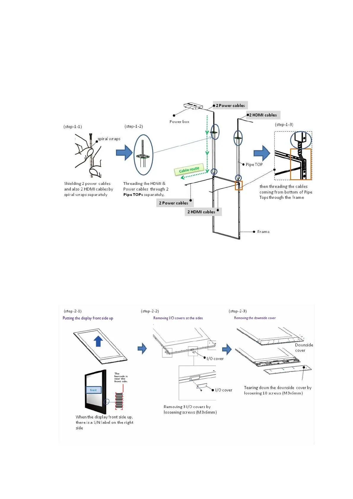 2. Threading the HDMI & Power cables through 2 Pipe TOPs (mark blue)