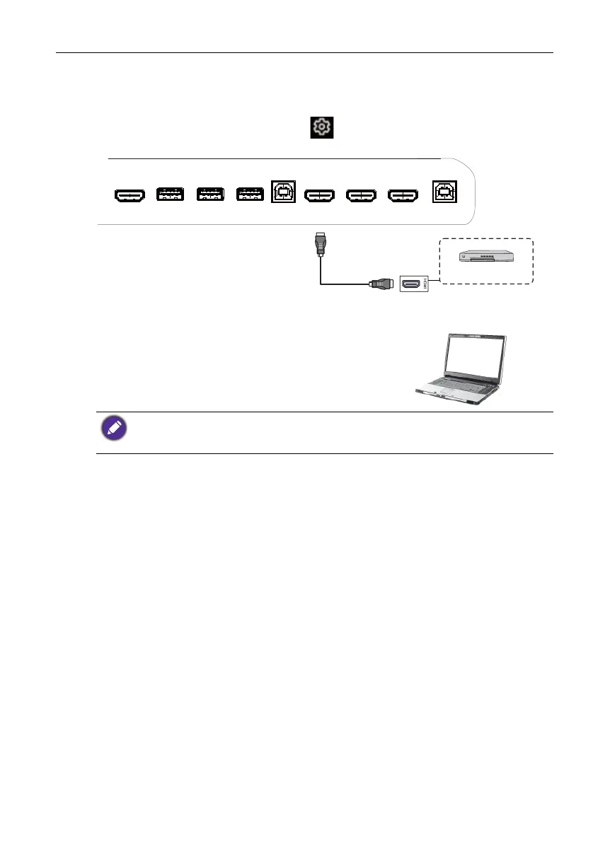 player) to the HDMI input jack on the display using an HDMI cable.