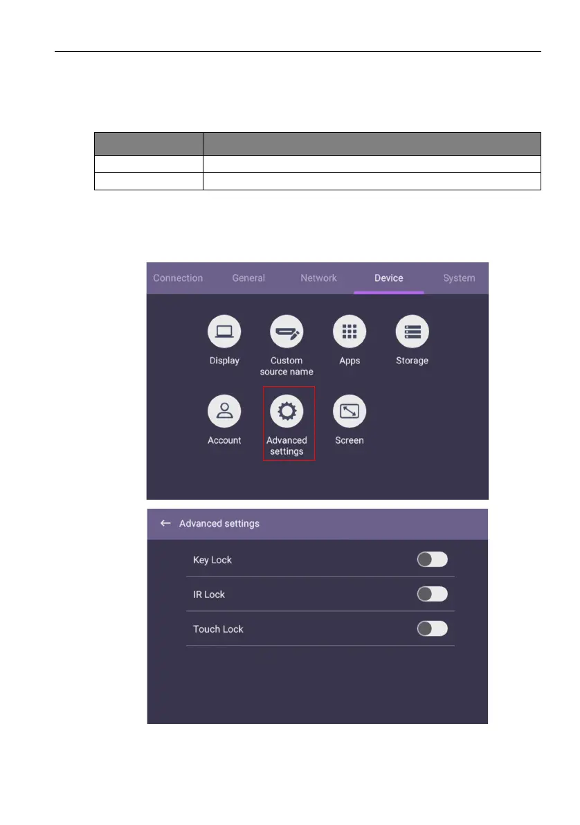 Go to Device > Advanced settings.