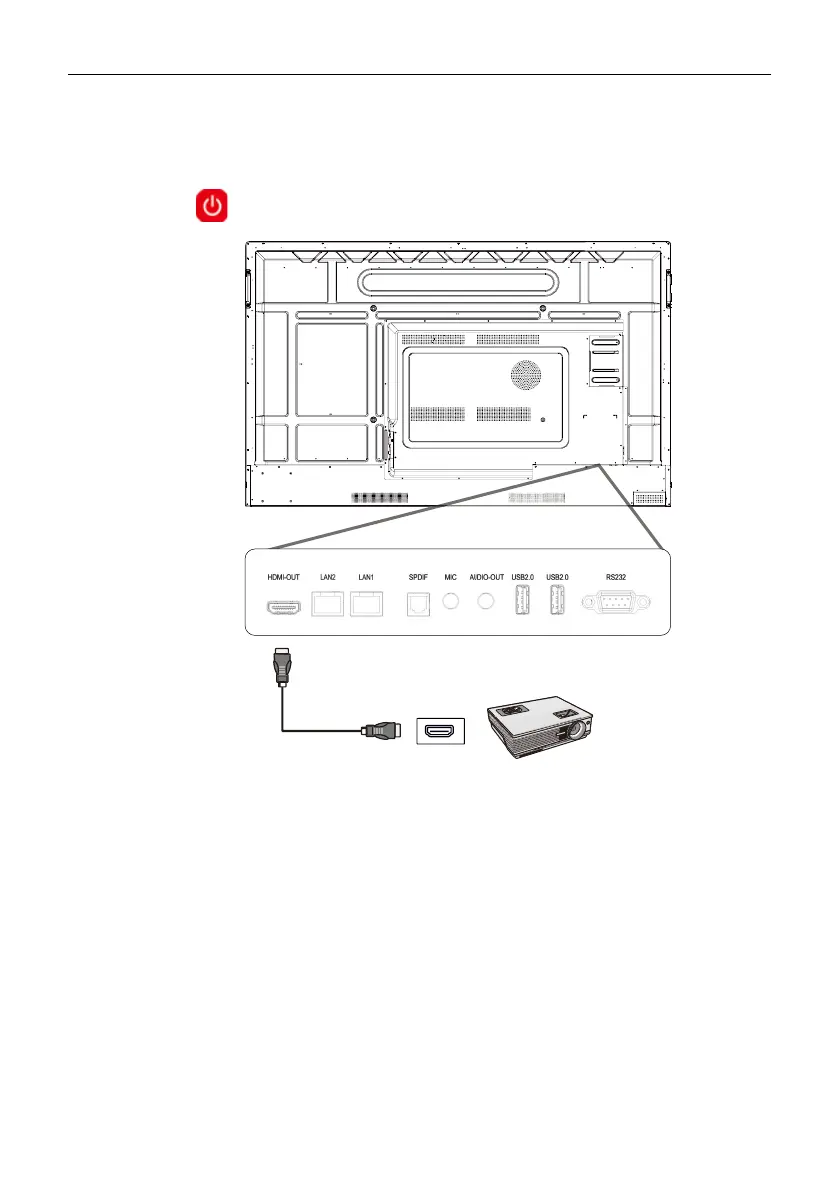 1. Use an HDMI cable to connect the HDMI OUT port to the respective input port
