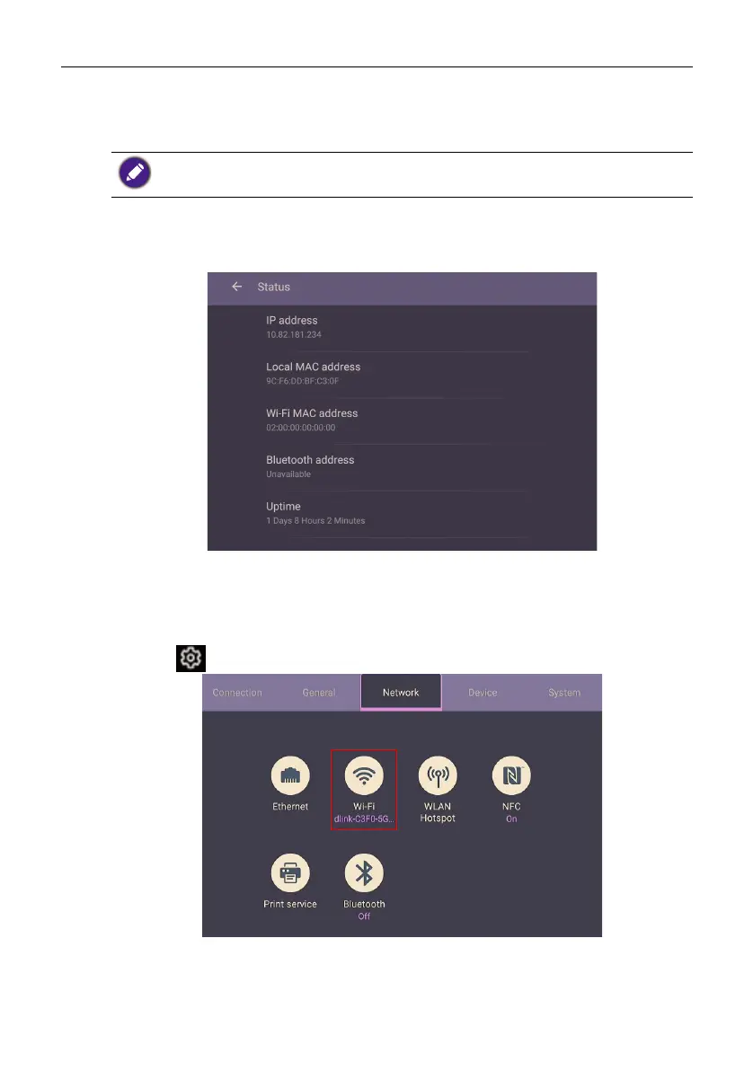 On the home screen, go to Setting > System > About > Status. If there is no IP