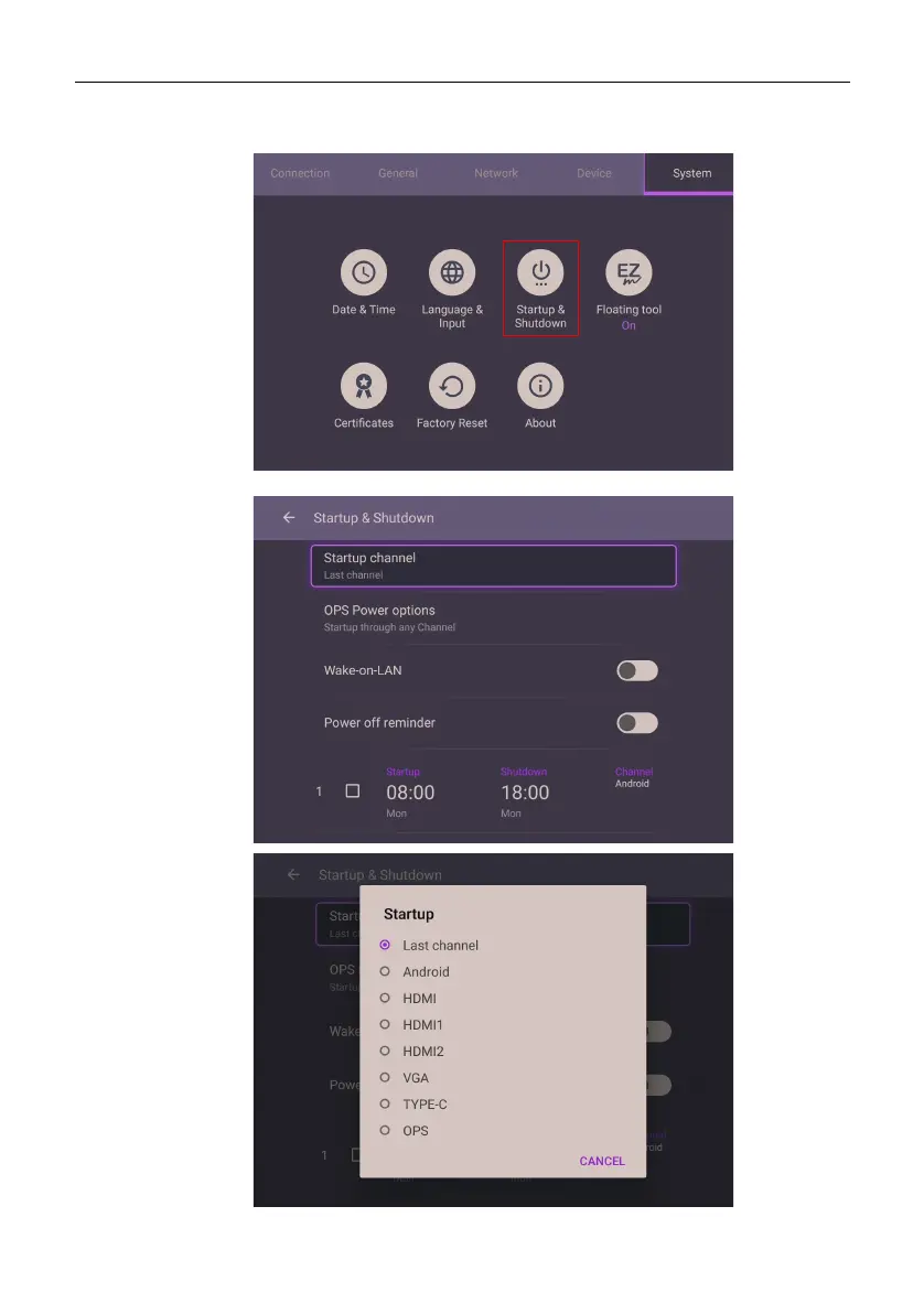 • For Startup channel, you can choose Last channel or other sources.