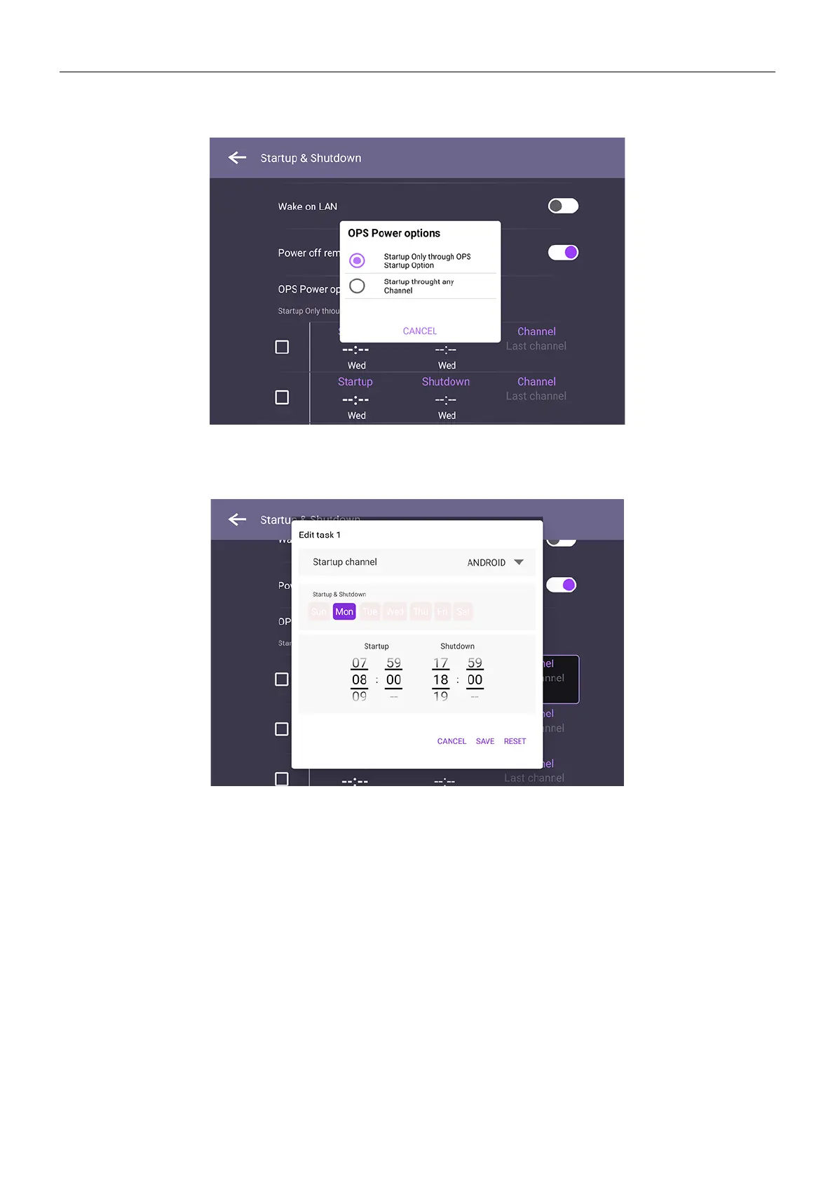 For Power off reminder, you can set on or off time. Schedules can be made by