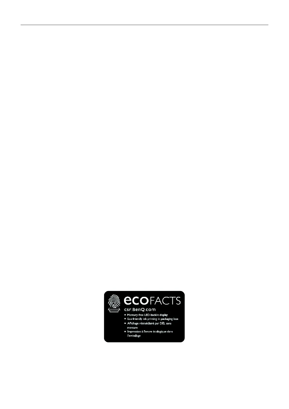 disposal of the products. BenQ ecoFACTS label lists key eco-friendly design highlights of