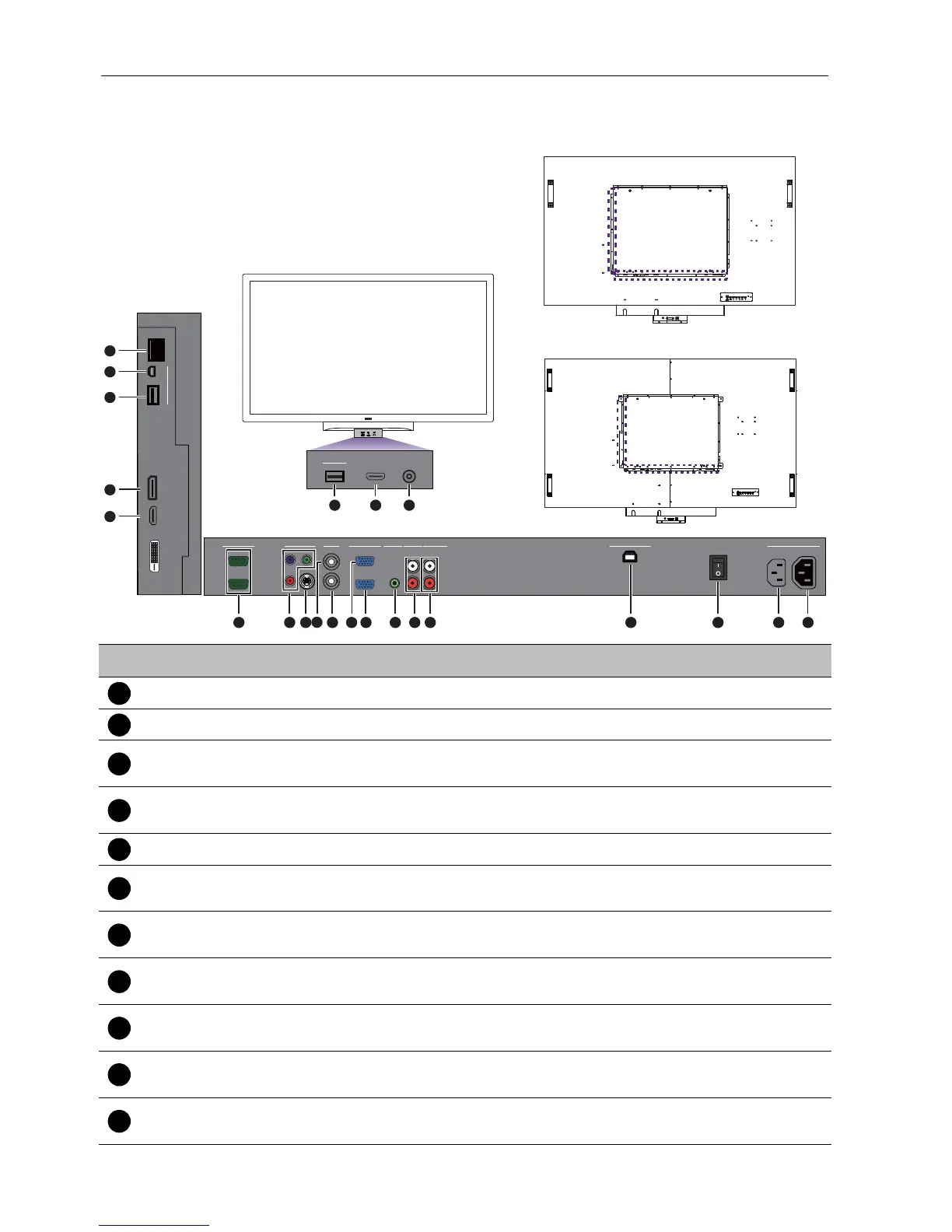 AC IN (3.4A) Connects to a power outlet via the supplied power cord.