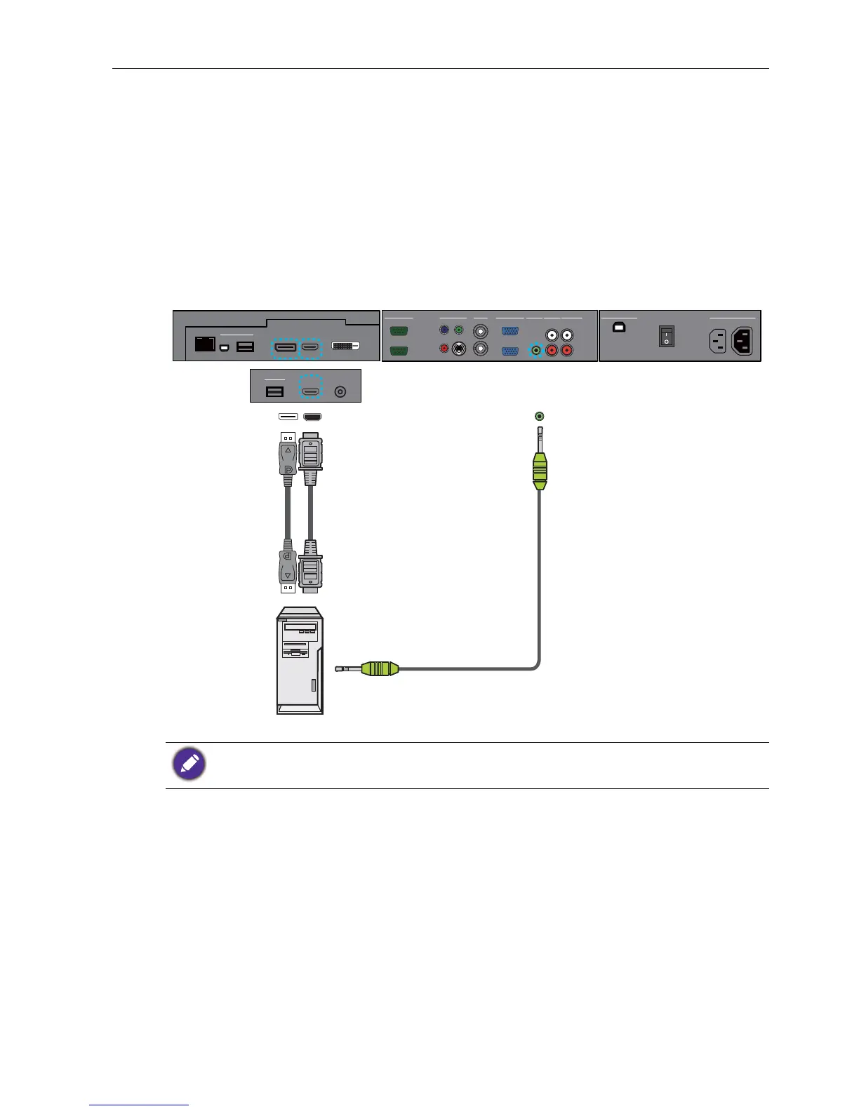 2. If the DisplayPort connection is used, connect the audio output jack of the device to