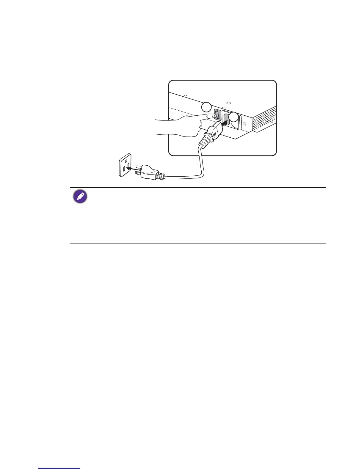 • The power cord and outlet illustrated may differ from the ones used in your region.