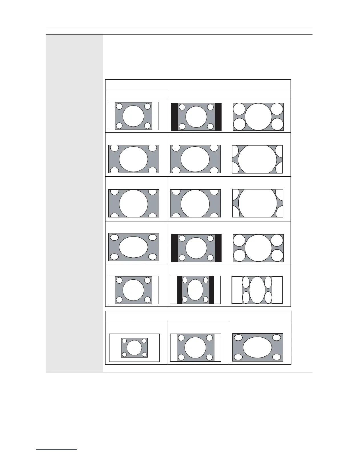 • Full 1: Enlarges the picture to fill the screen in the vertical direction,