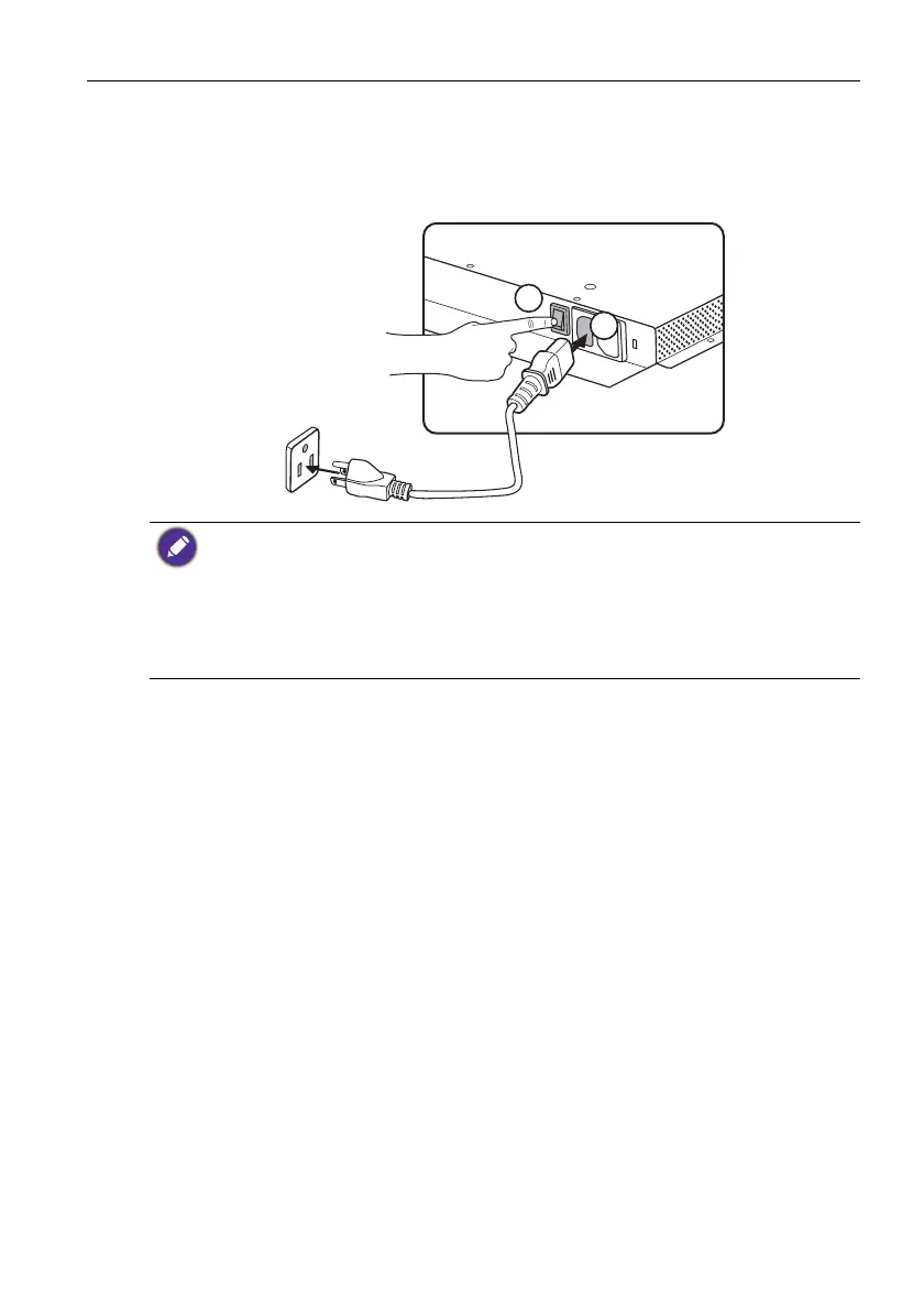 • The power cord and outlet illustrated may differ from the ones used in your region.