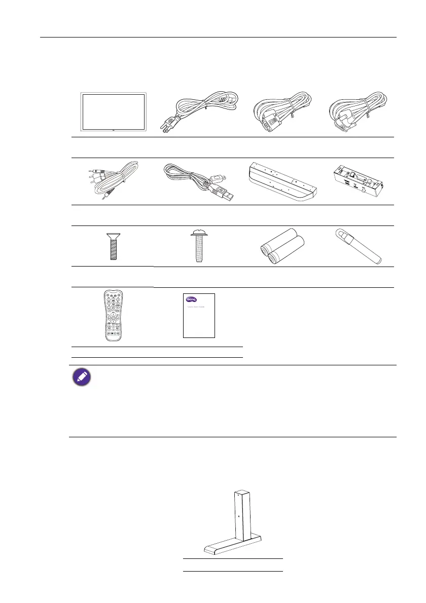 Open the sales package and check the contents. If any item is missing or damaged, please