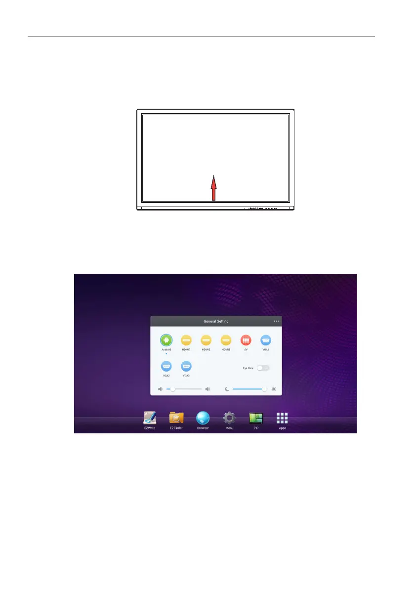 Drag the General Setting menu up from the bottom-center of the screen, as shown