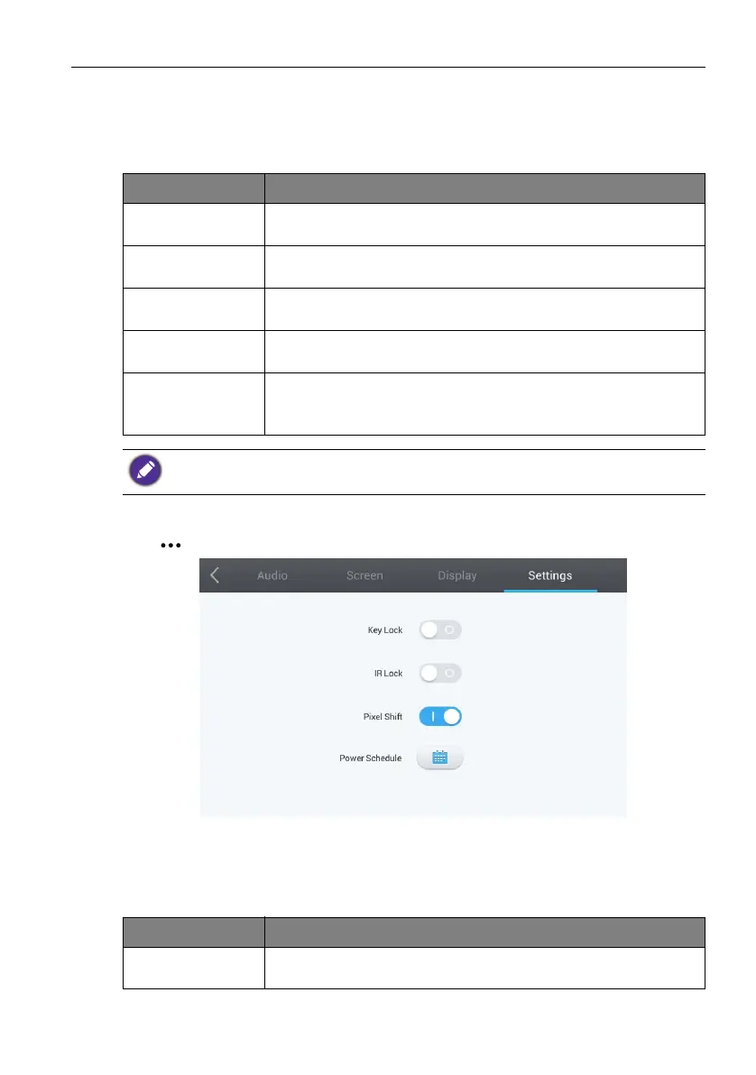 or unlock the buttons on the front panel of the display.