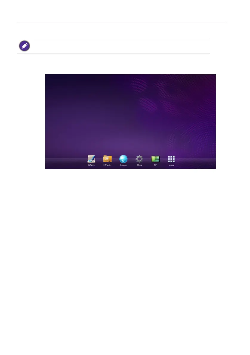 • Press HOME on the remote control or Home button on the front panel to return to