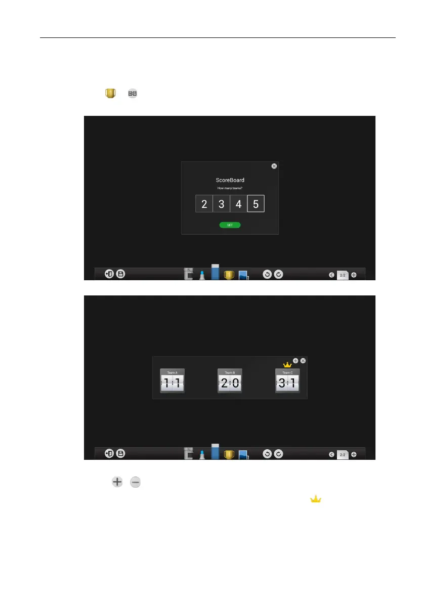 Scoreboard allows you to create 2 to 5 touchscreen scoreboards for use in interactive