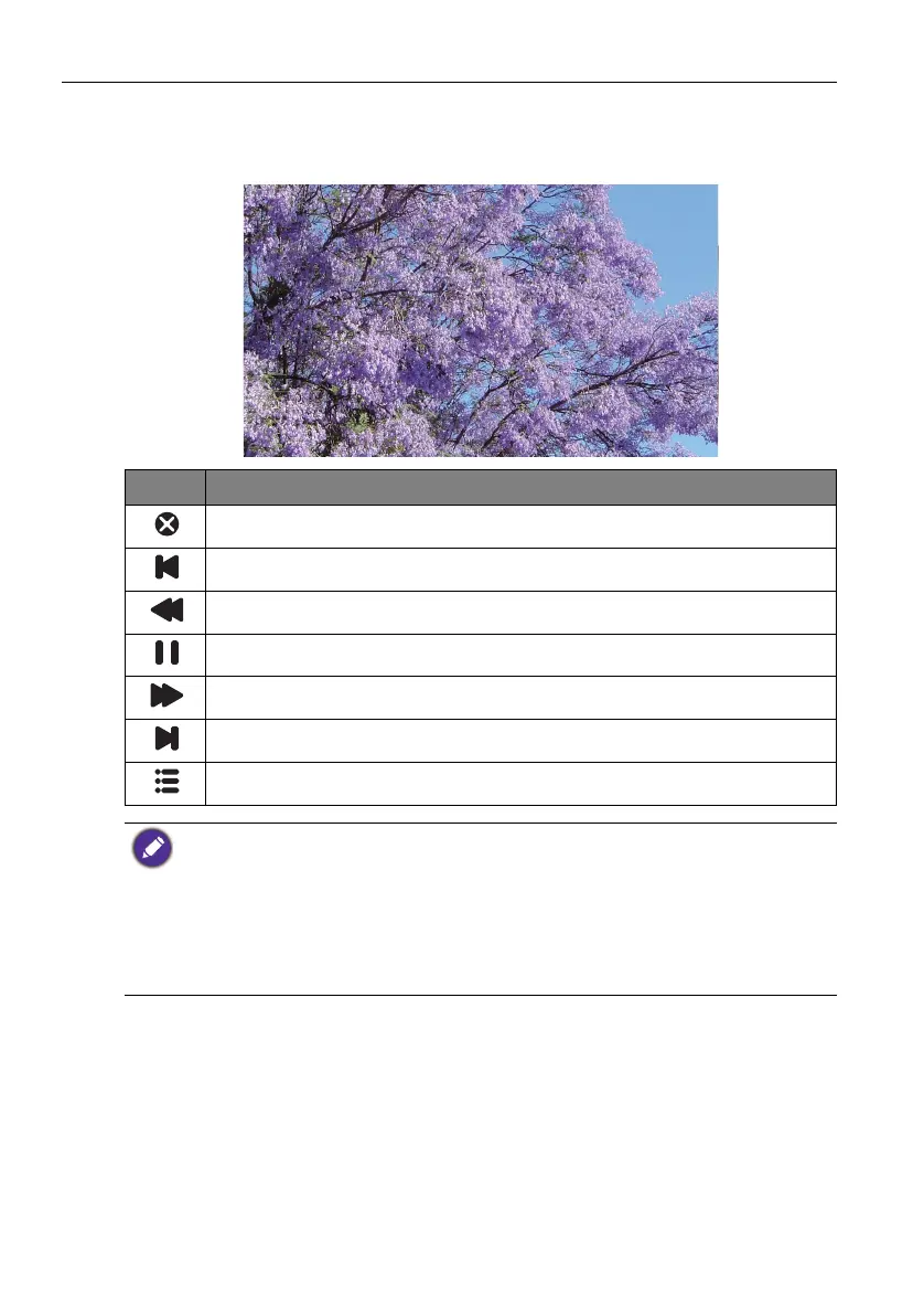 Select a video file you want to play on the display and perform any of the functions shown