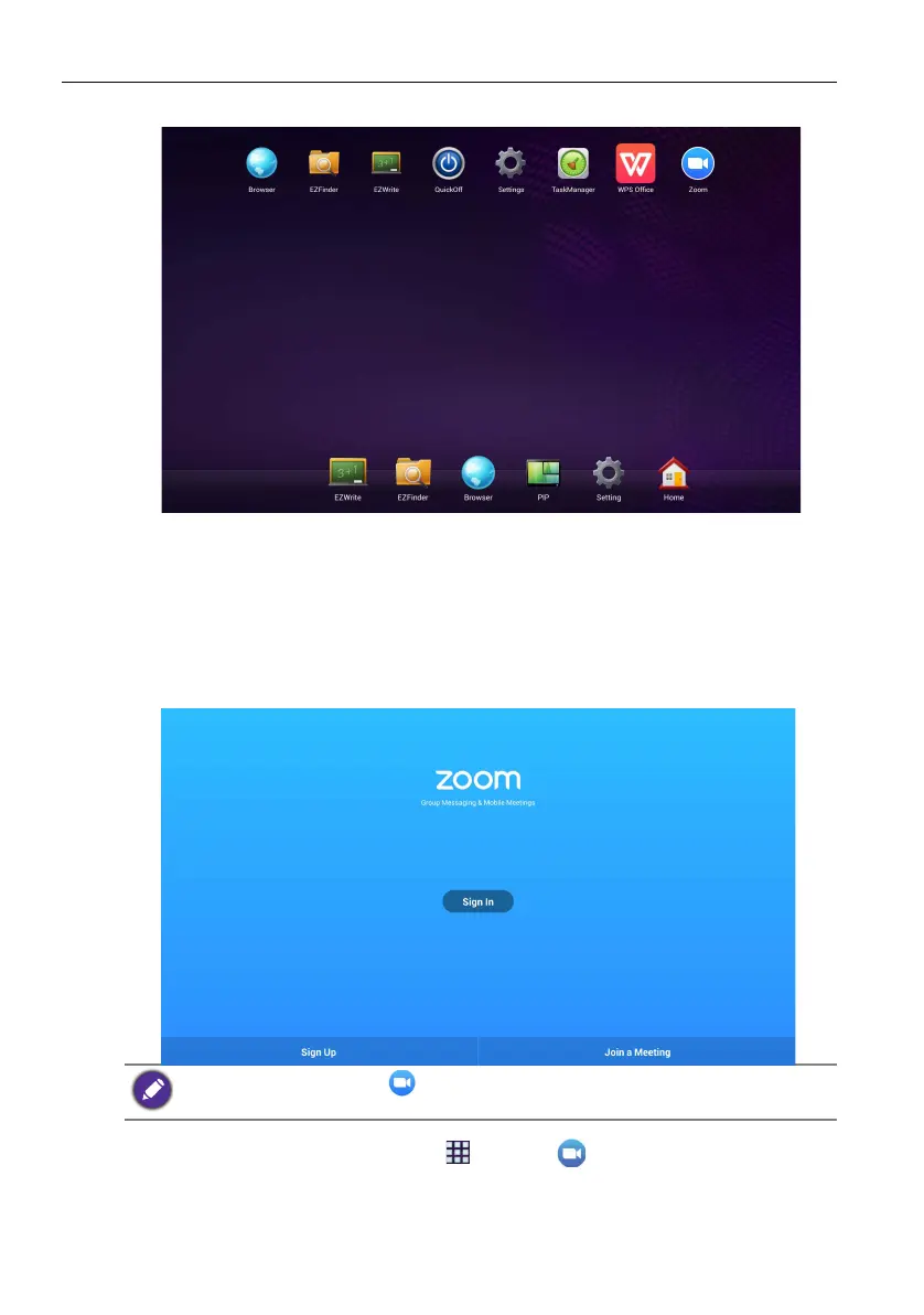 Zoom is a video-conferencing app that is installed in the display by default. It allows you