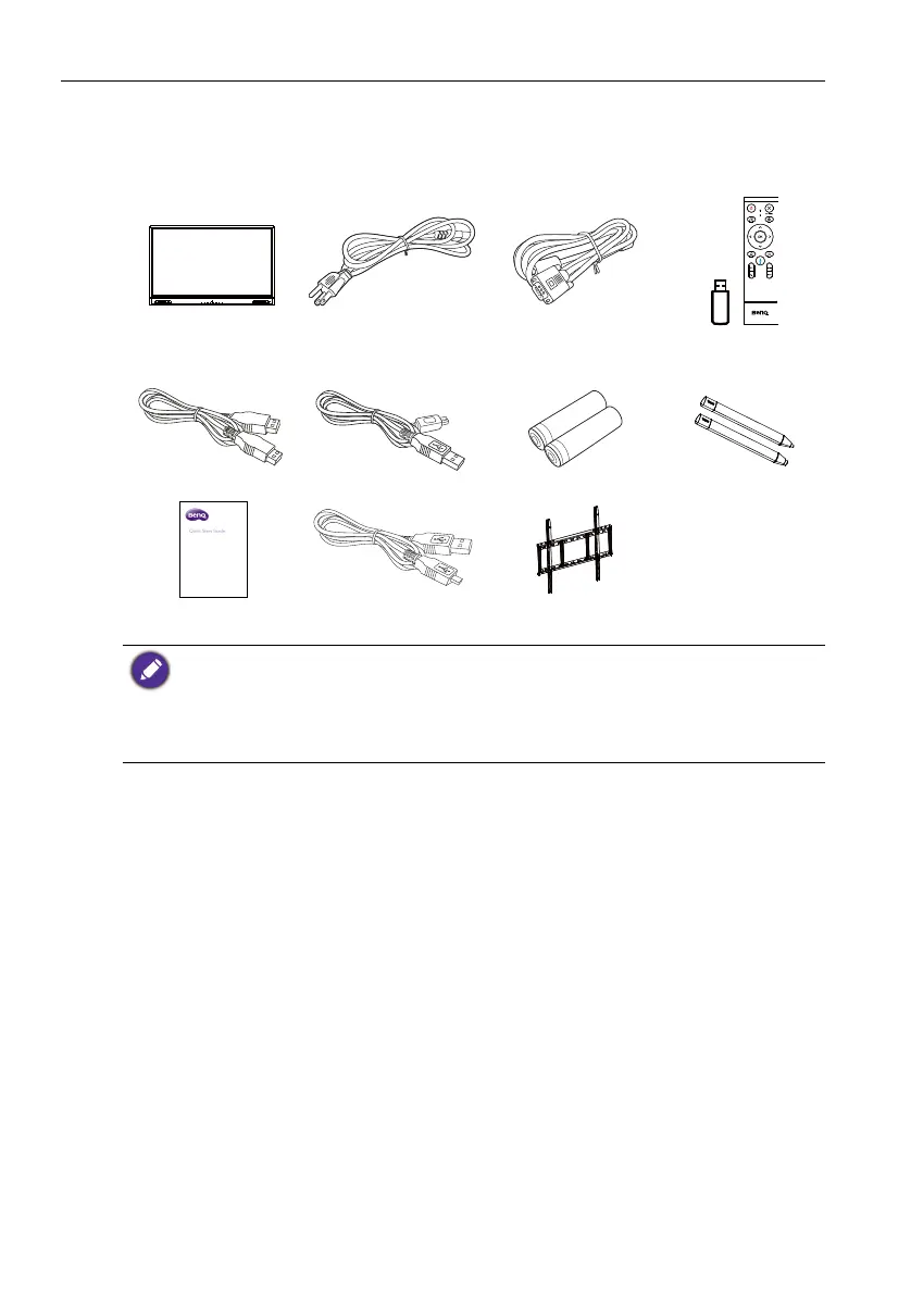 HDMI cable x 1 USB cable x 1 AAA battery x 2 Touch pen x 2