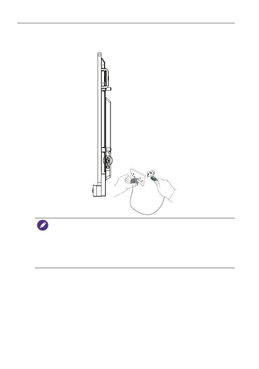 Plug one end of the power cord into the Power jack on the display and the other end
