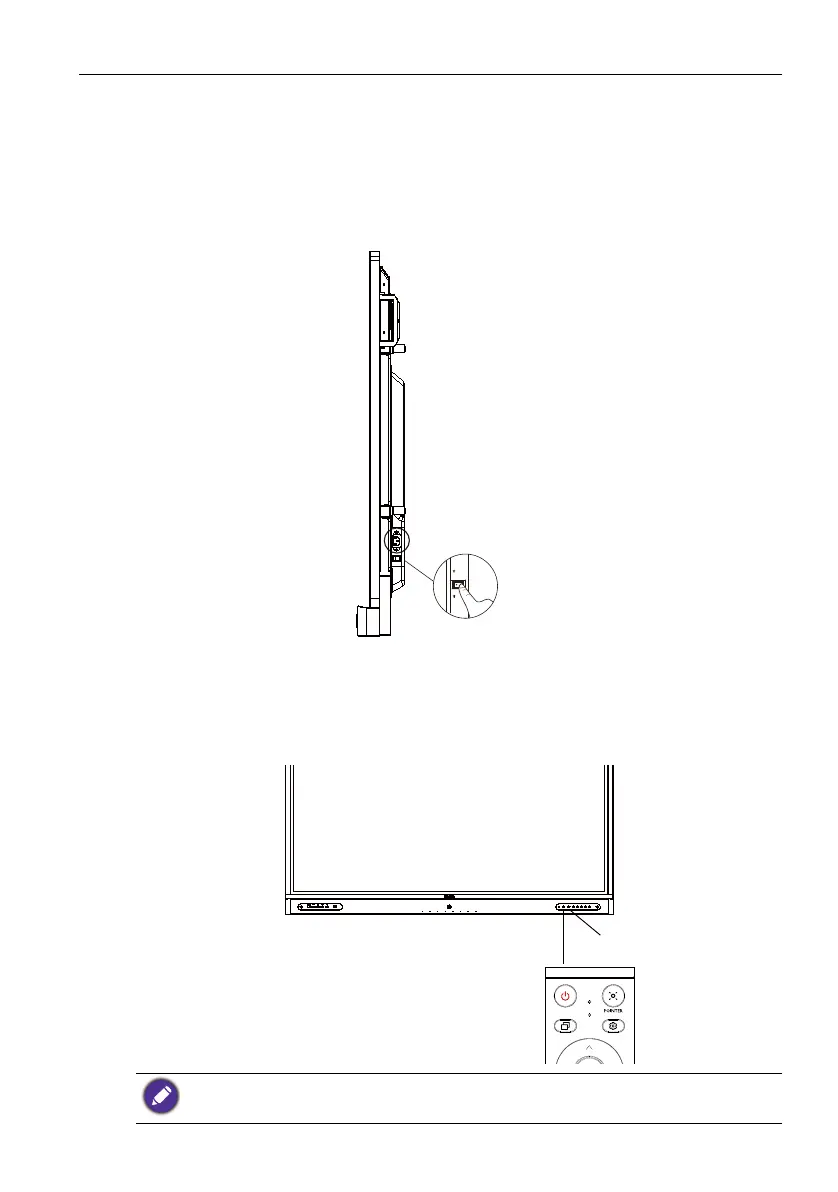 • To turn on the display, press the Power button on the control panel or on the