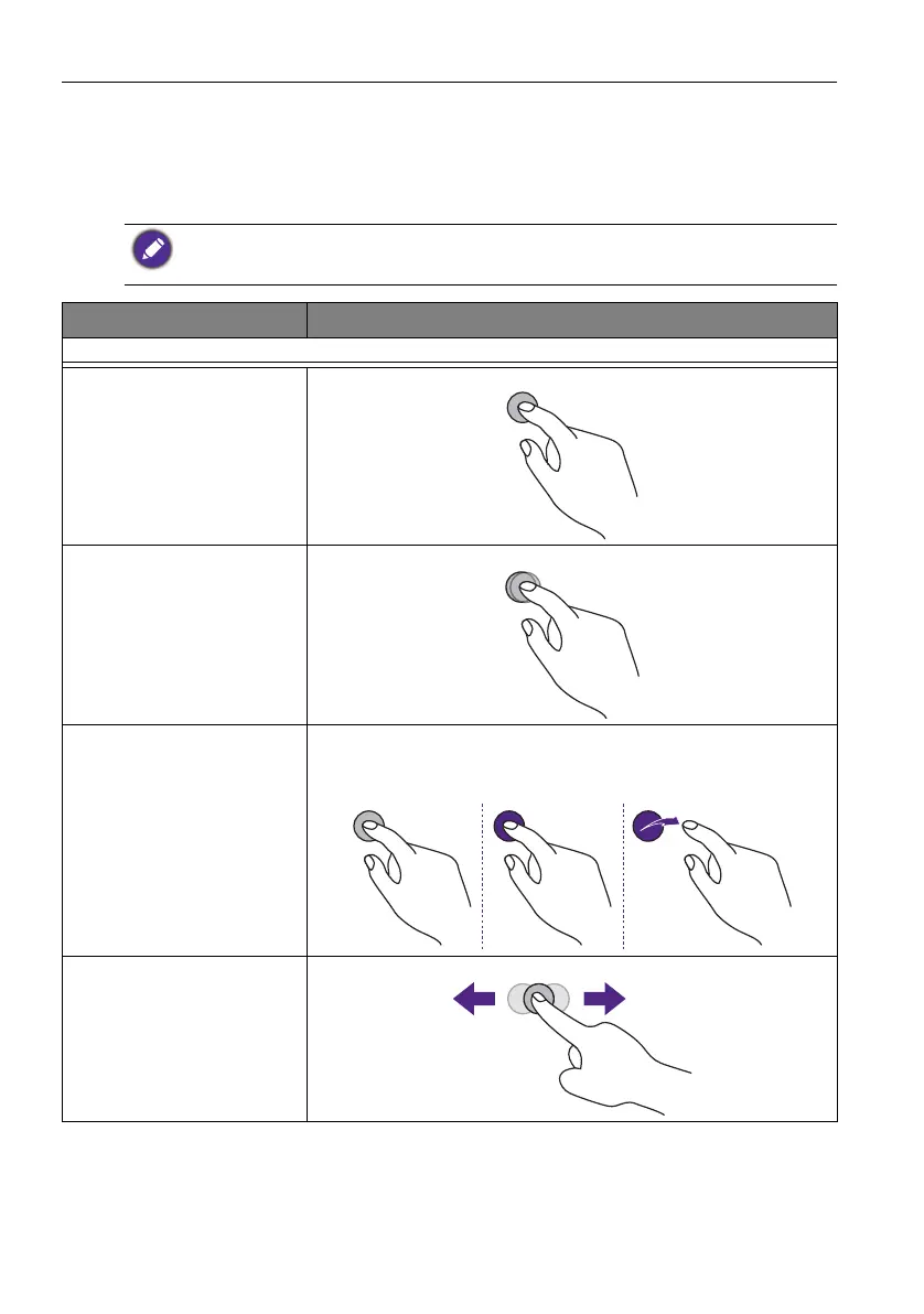 list of gestures you can use on the touch screen.