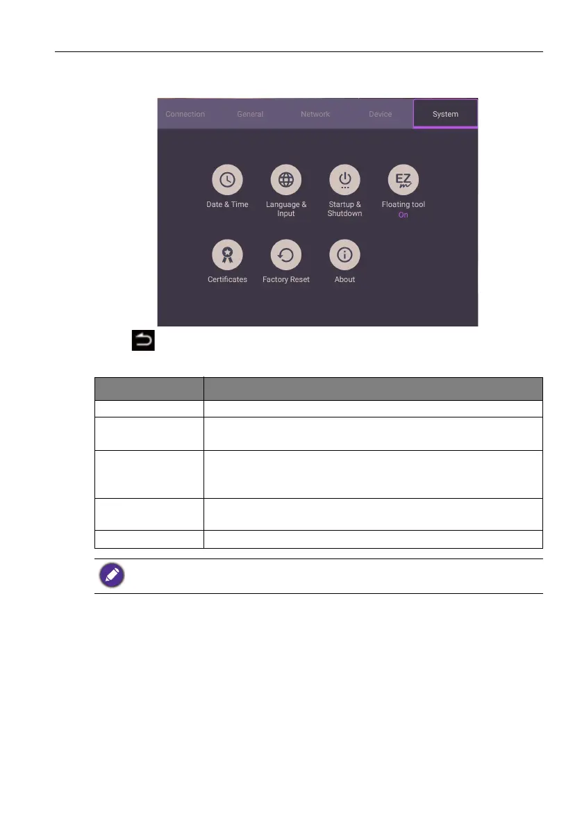 On the home screen, select Setting > System to enter system settings.