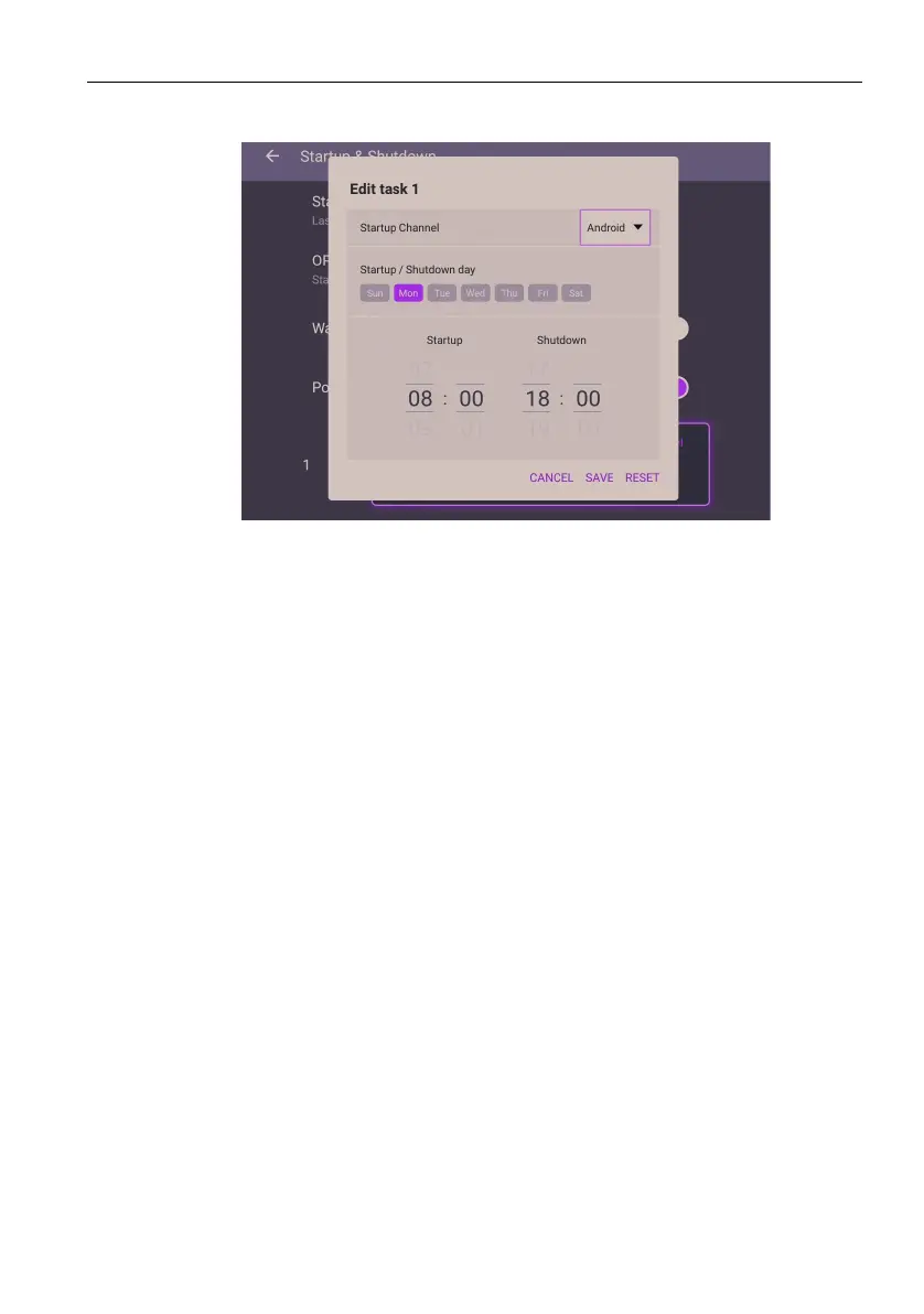 • For Power off reminder, you can set on or off time. Schedules can be made by