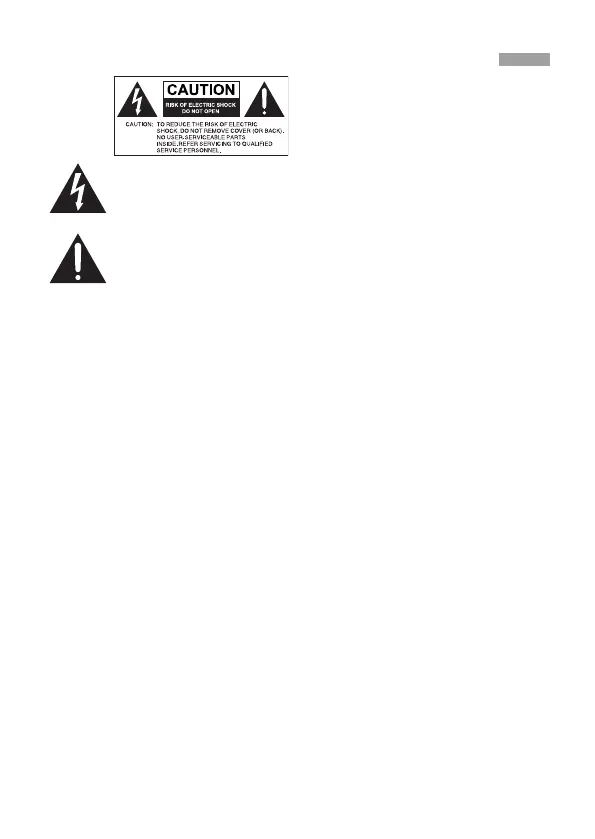 • To reduce the risk of electric shock, do not remove covers. No user serviceable parts inside. Refer