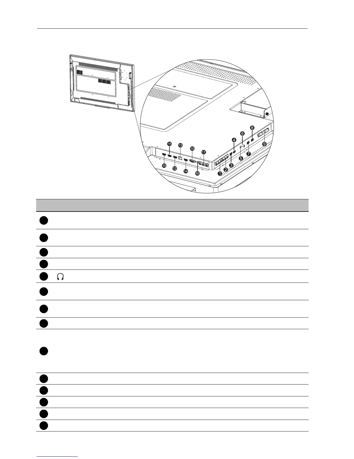 Connects the USB cable from the display to a computer to use the