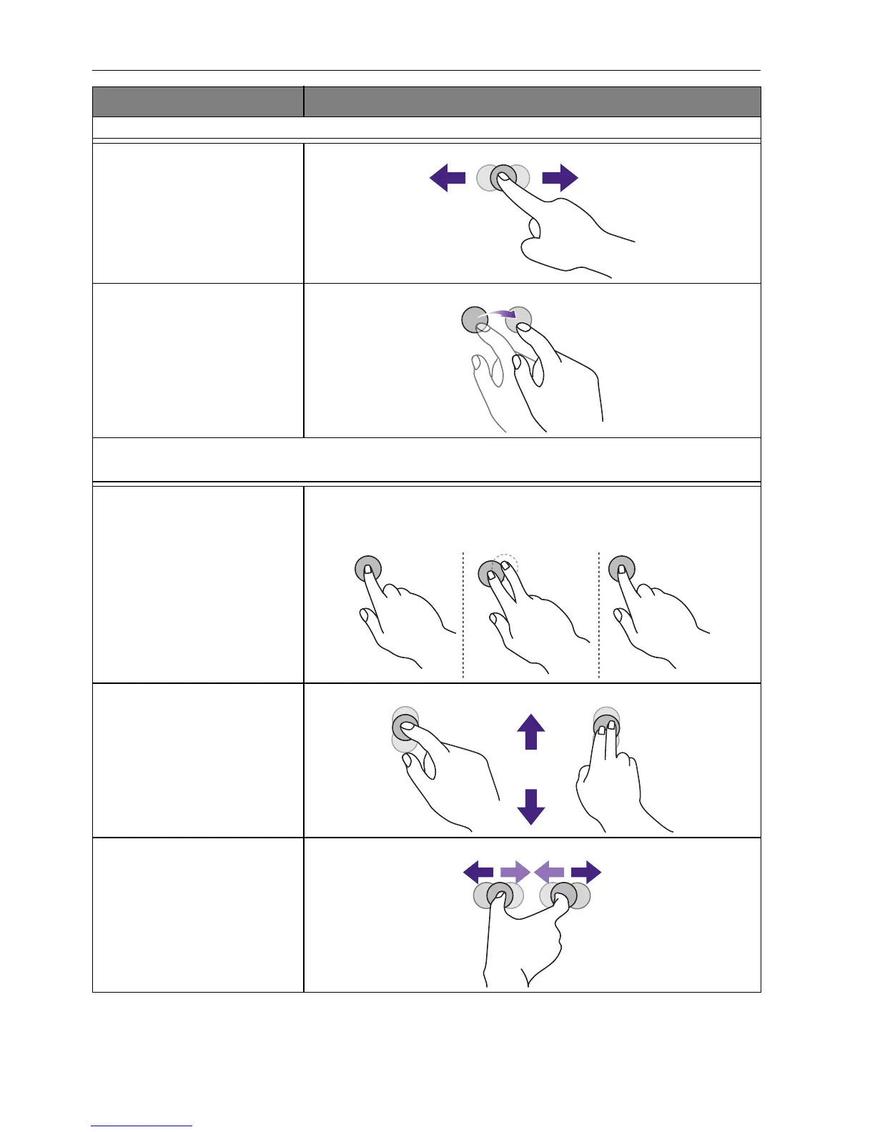 OS functions Gesture actions