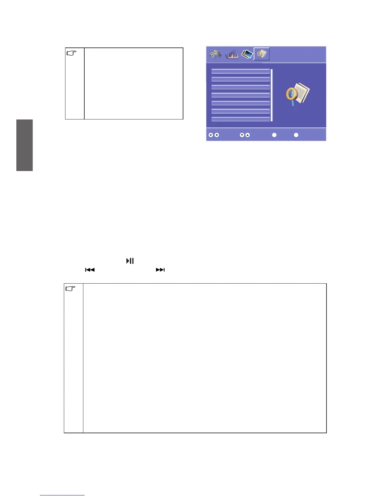 You can play the songs in the MUSIC menu then enter to the TEXT menu to play the text