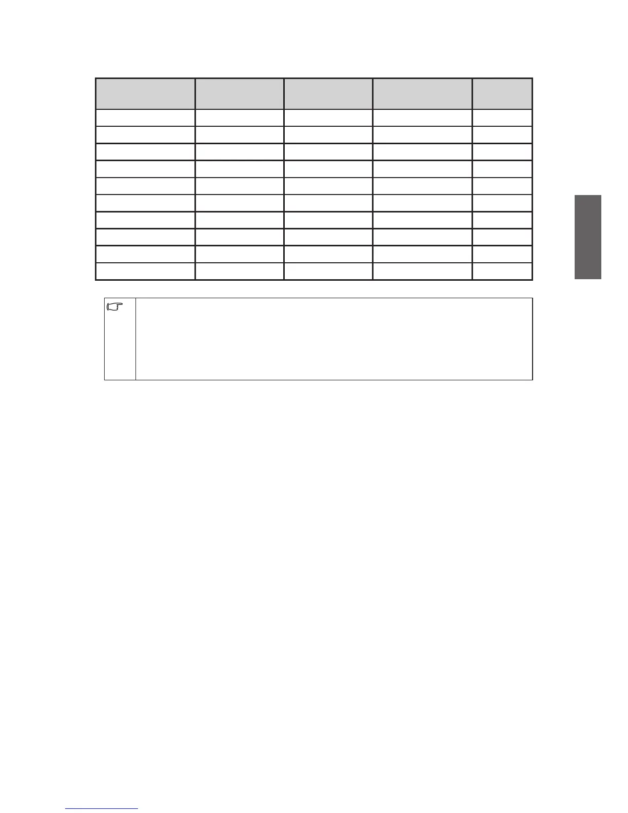 The PC/DVI and Component Video resolutions not listed in these tables will not be •