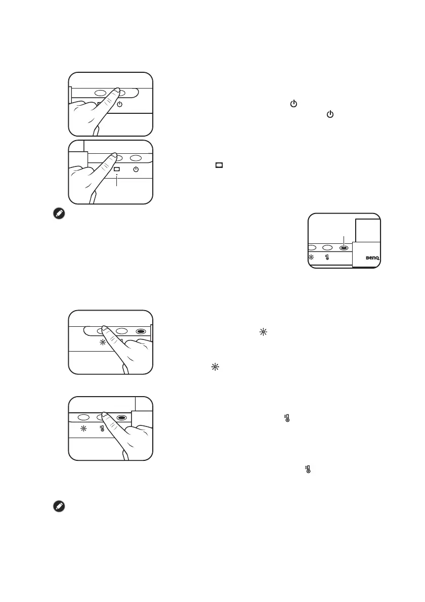• Wanneer de lamp is ingeschakeld, raakt u de knop voor het