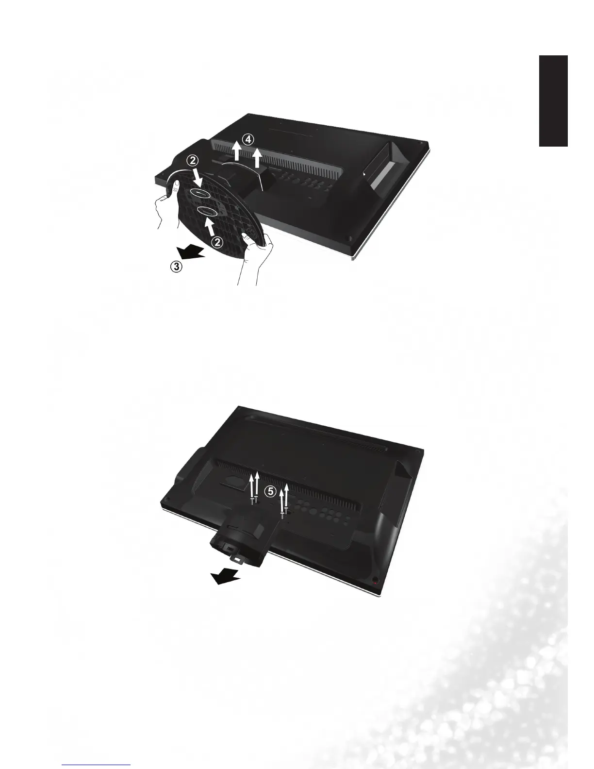 2. Push inward the two inserts located under the stand base of the LCD Display, as