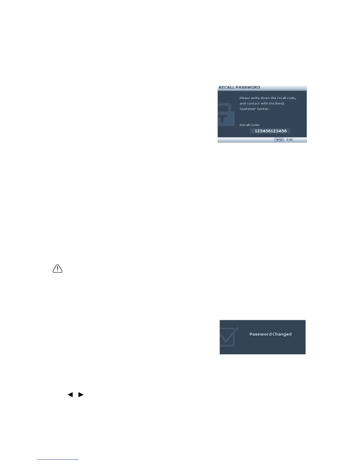 Yo u c a n p r e s s MENU/EXIT to cancel the change or try another password.