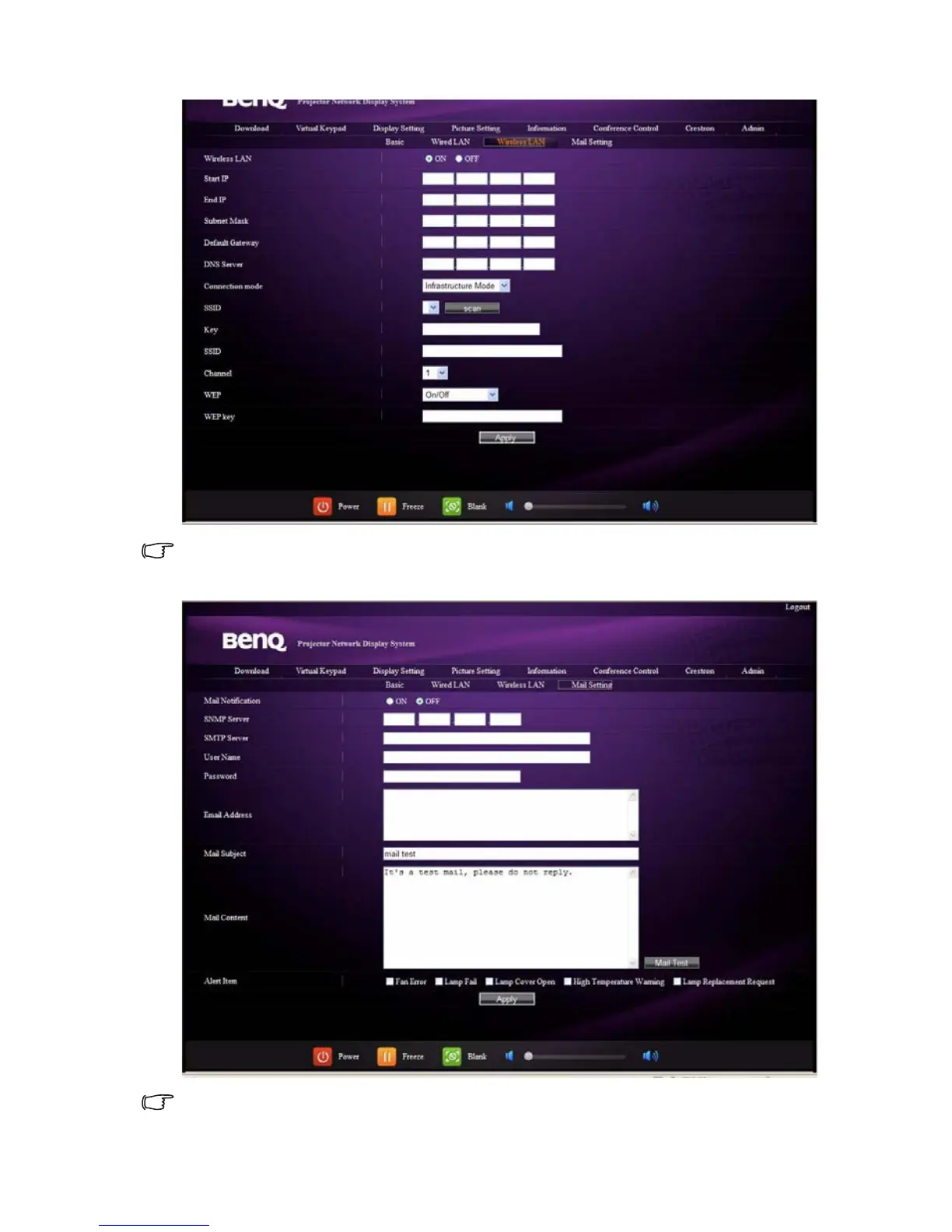 The Wireless LAN page allows you to adjust the Wirless LAN settings.