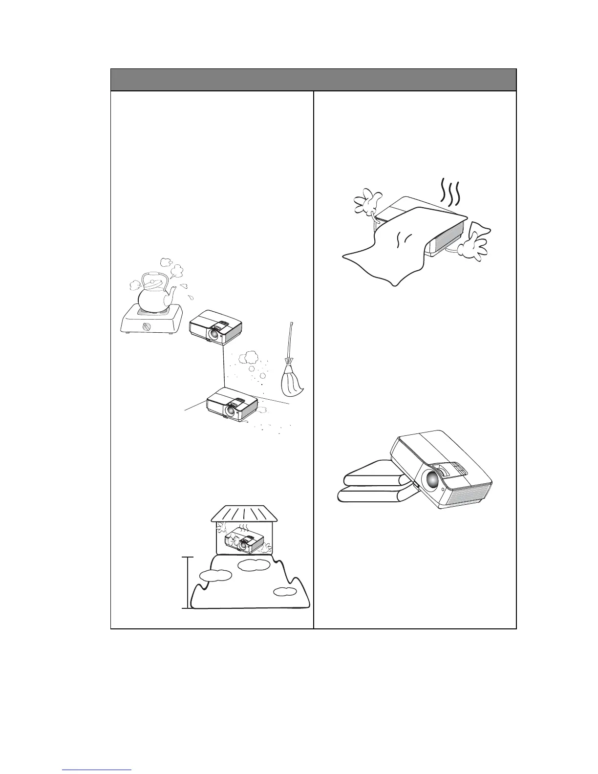 13. Do not place this projector in any of
