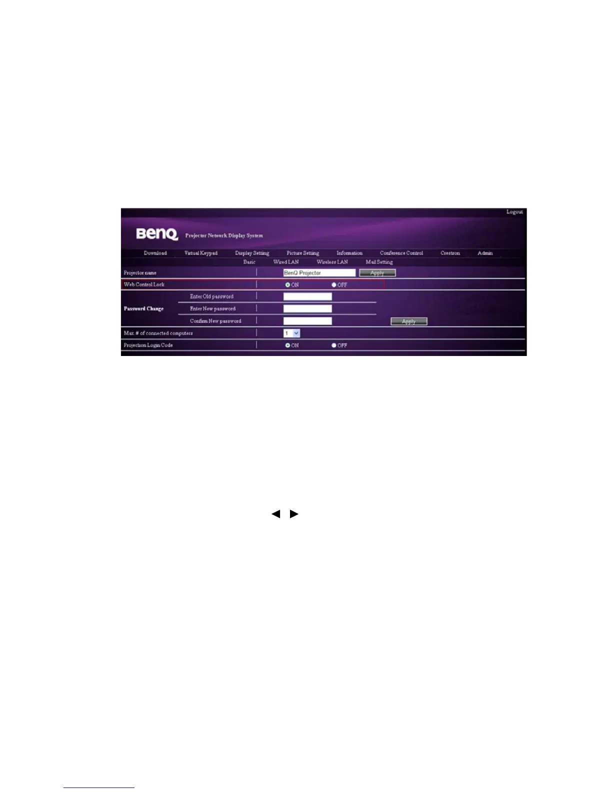 projector settings through the Projector Network Display System.
