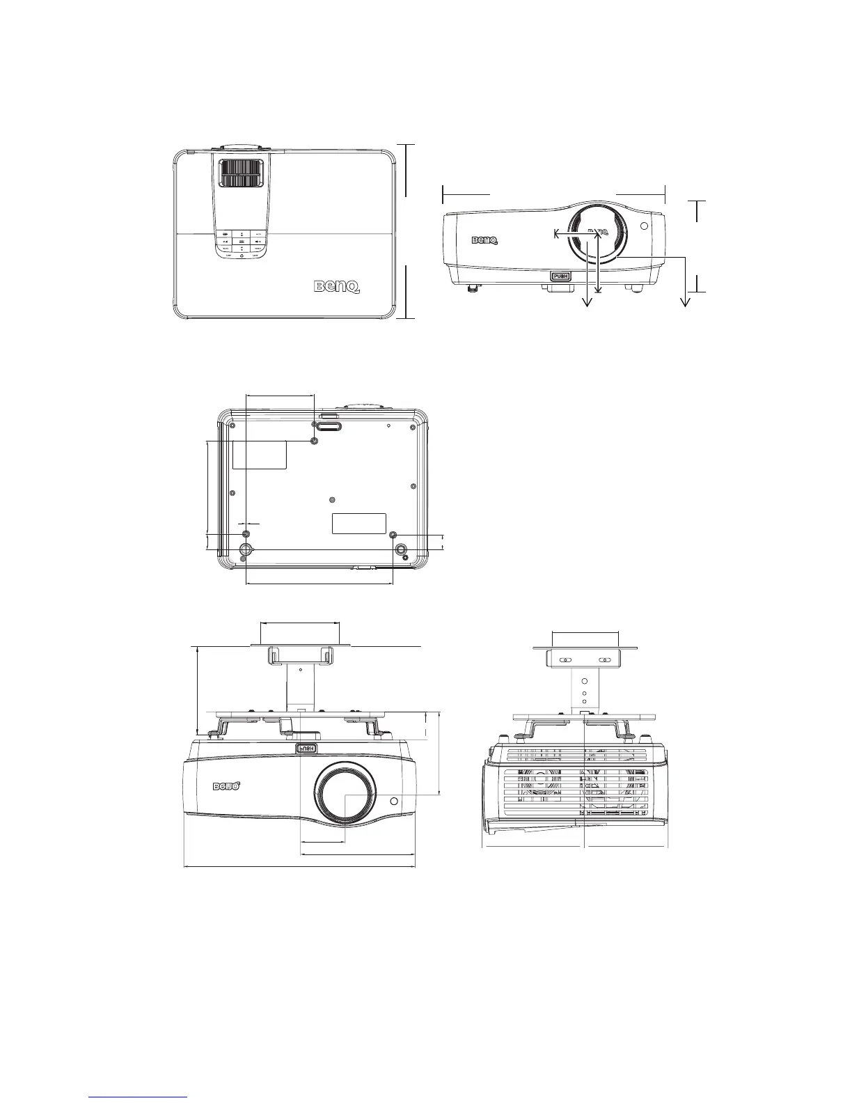 BenQ SH910 - Dimensions; Ceiling Mount Installation Details