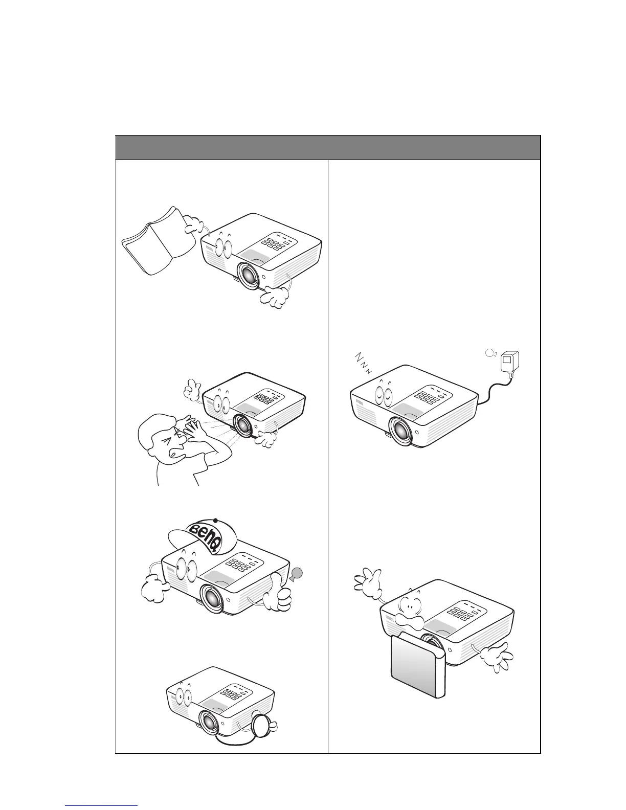 6. Do not block the projection lens with