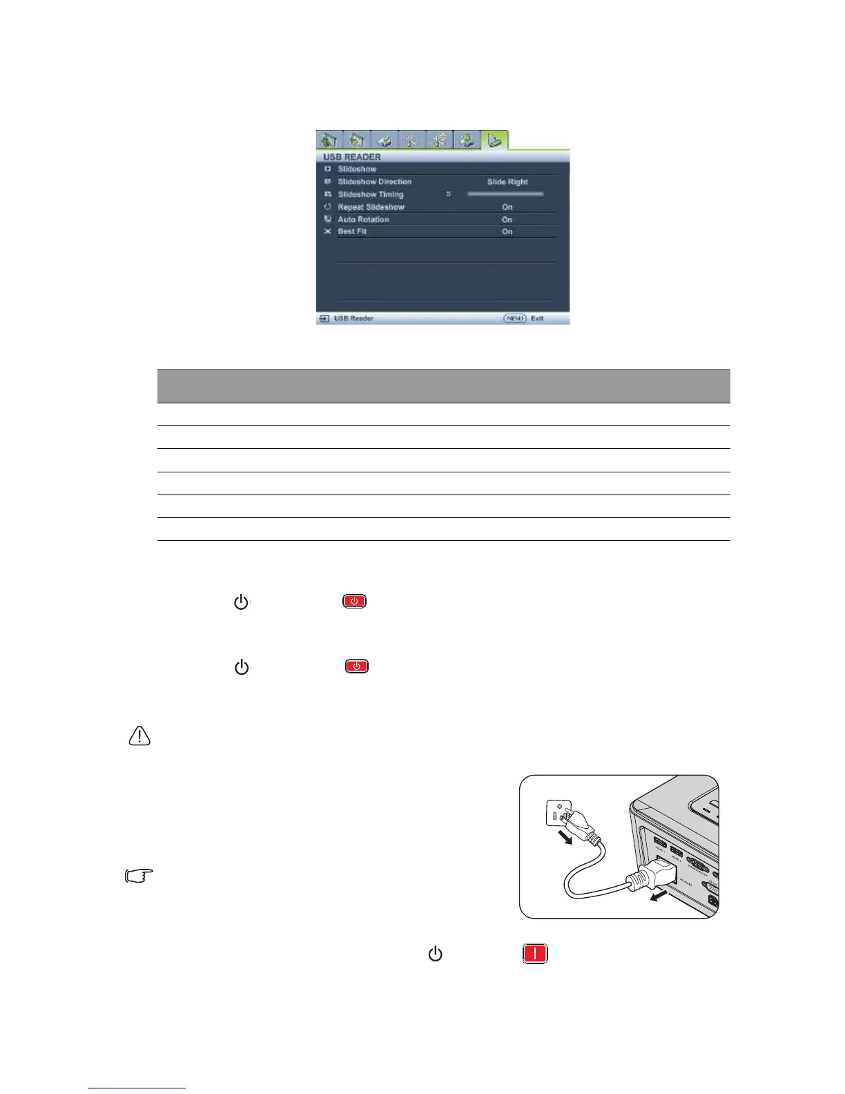 The USB Reader menu will display only when USB Reader source is selected. This menu is