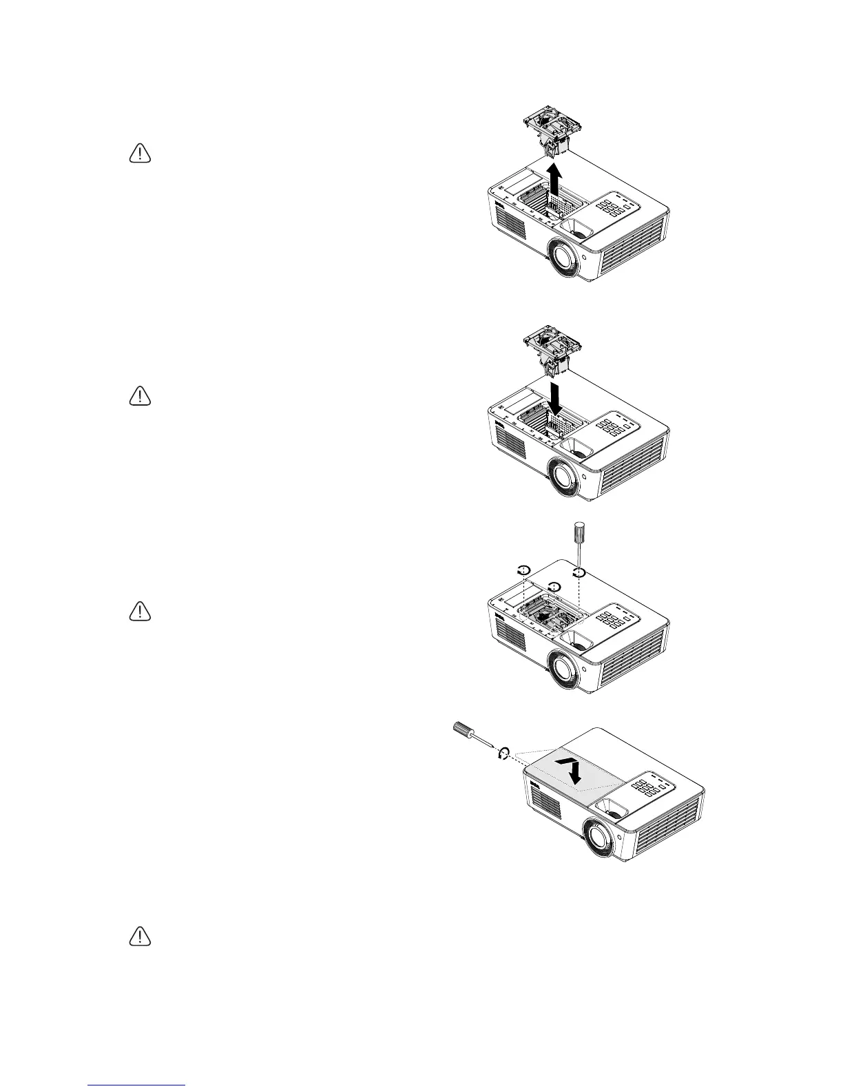 • Do not insert your hands into the projector after
