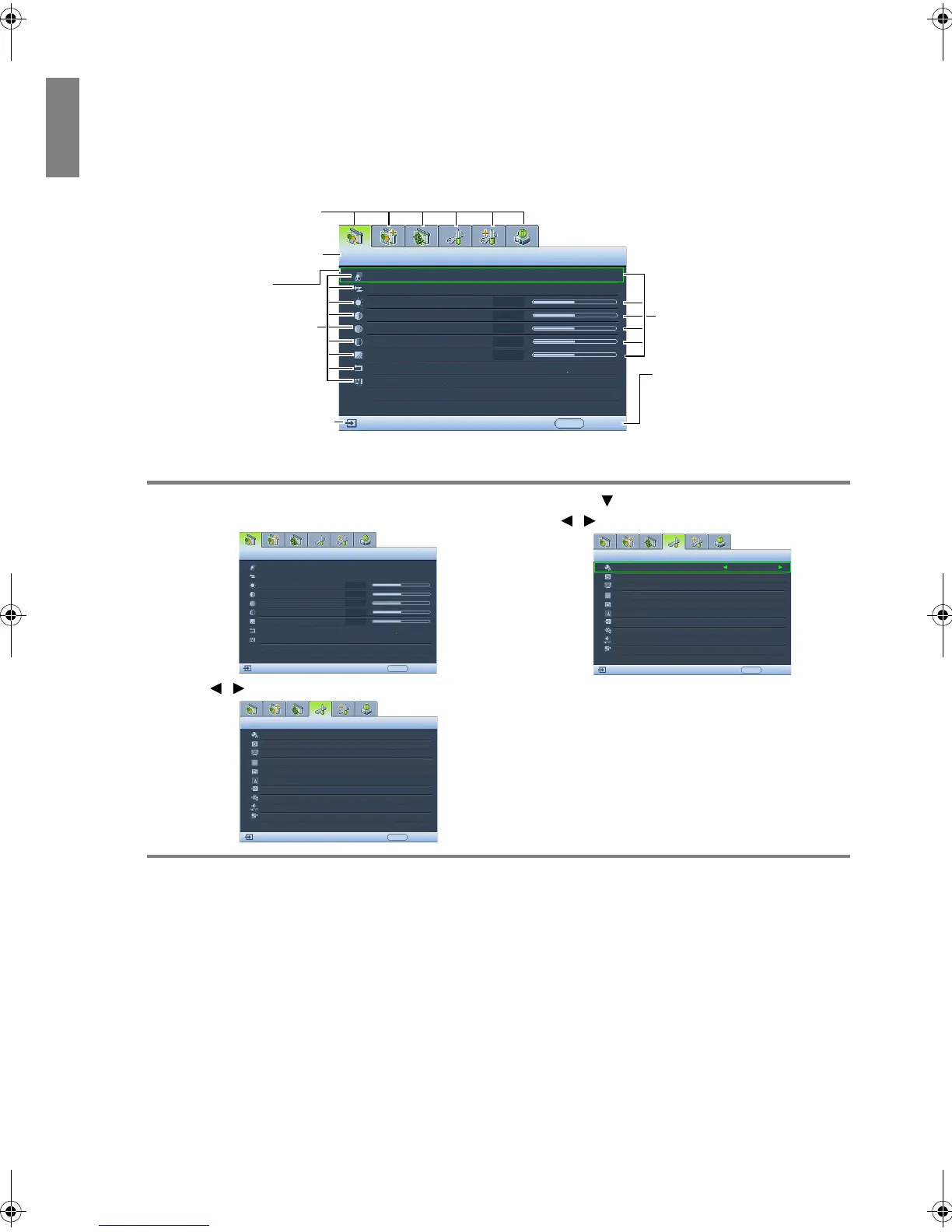 1. Press MENU on the projector or MENU/EXIT