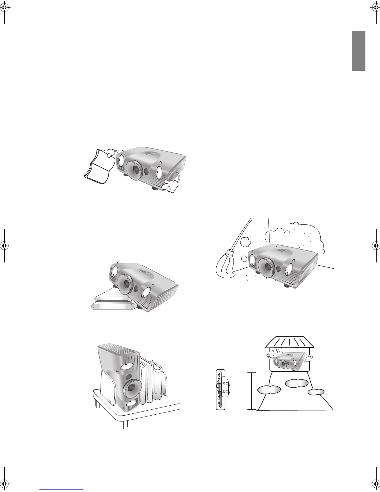 and free flow of air around the projector;
