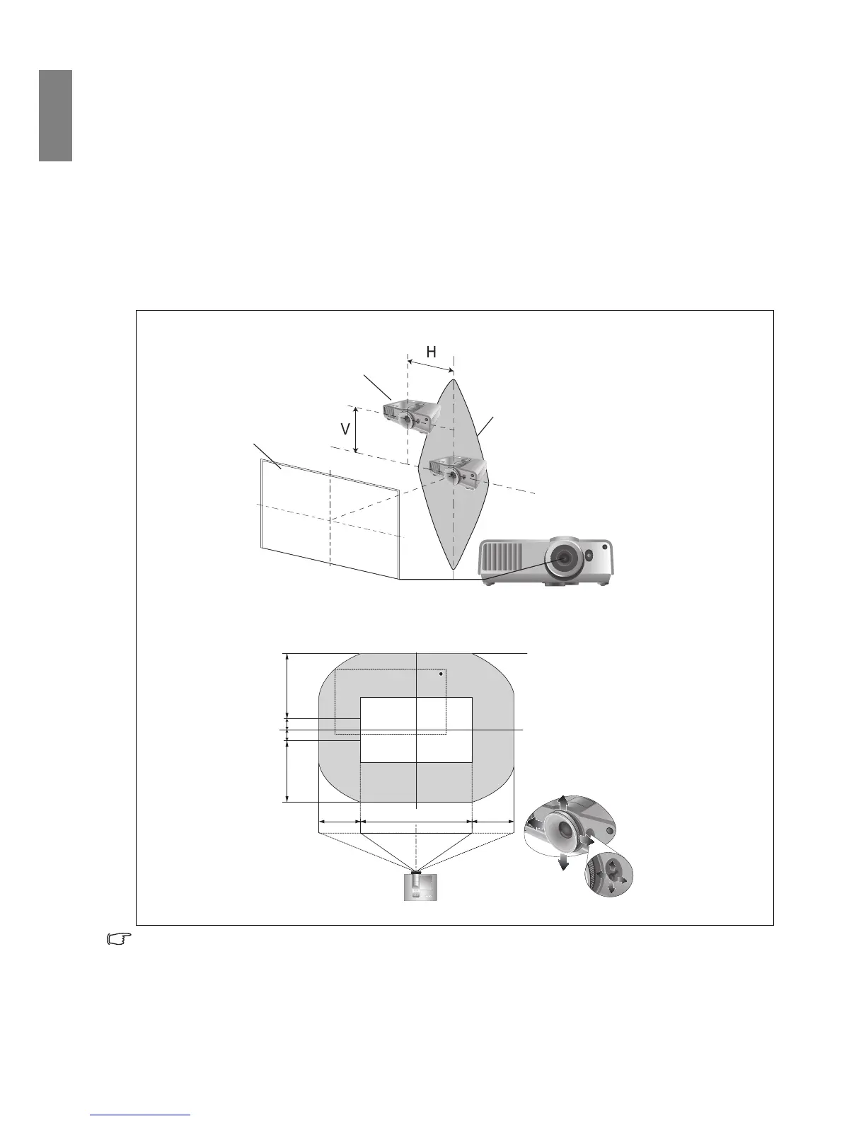 from the projected image’s vertical or horizontal center. You can use the lever to shift the projection lens in