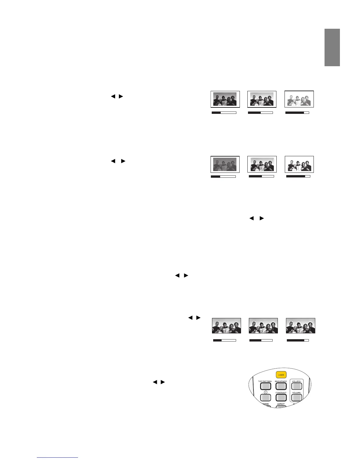 the values by pressing / on the projector or remote