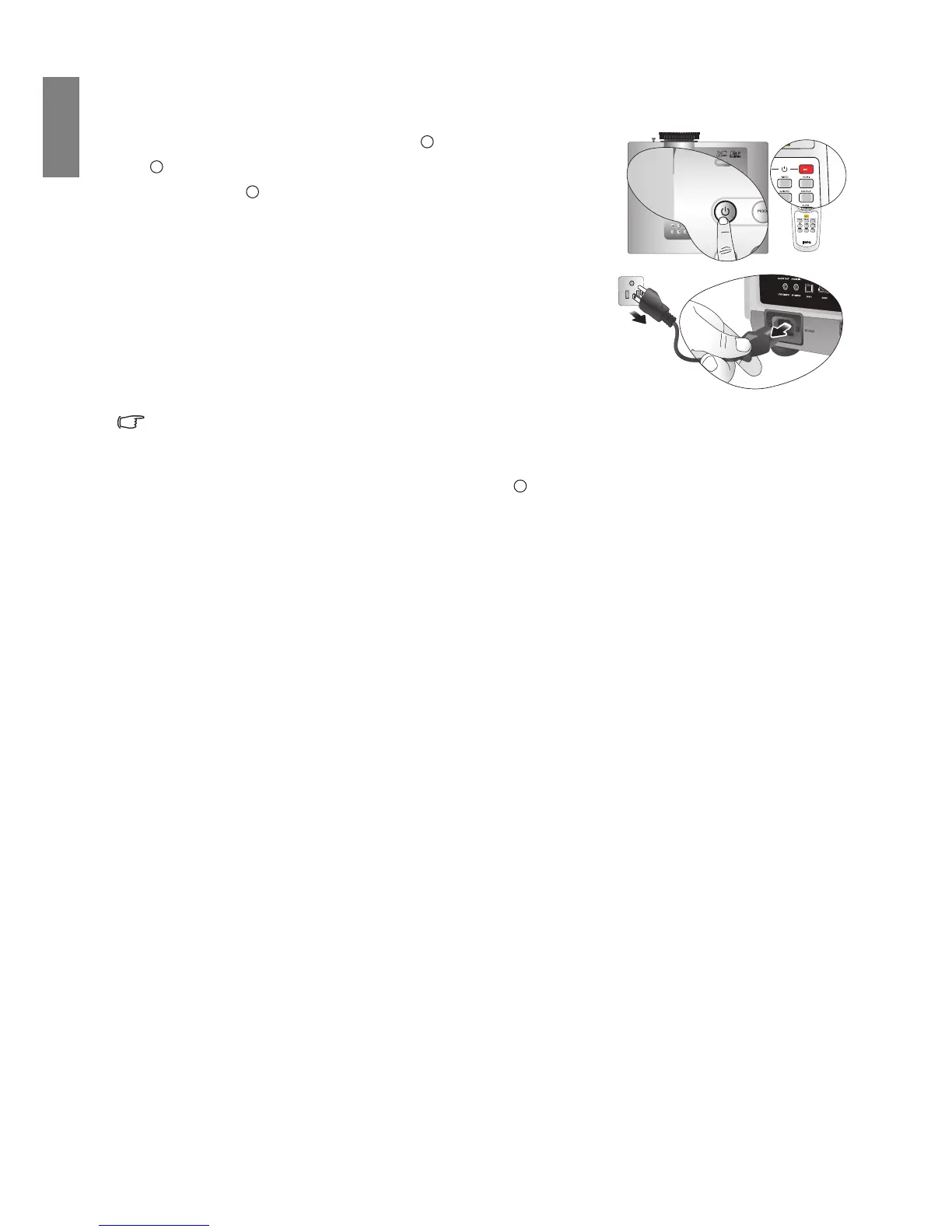 • If you attempt to re-start the projector shortly after shutdown, the