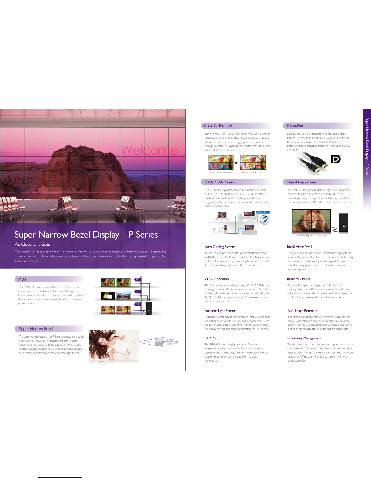 BenQ SL420 - Super Narrow Bezel Display - P Series Features; Color Calibration Solution; RS232;LAN Control; Digital Daisy Chain